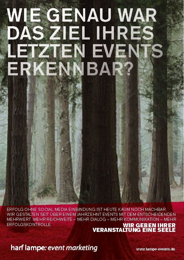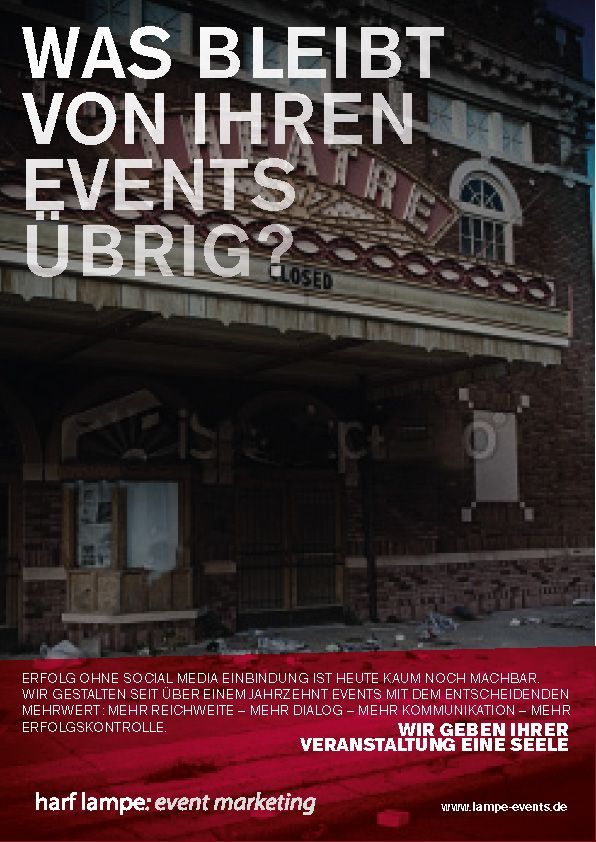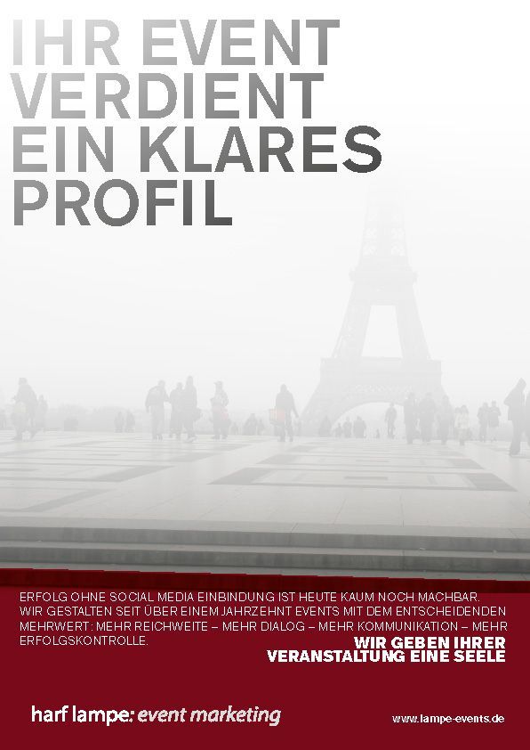 Harf Lampe war eine Eventagentur aus Berlin, die erfolgreich Großveranstaltungen für Renault Deutschland, die Ostdeutsche Sparkasse und viele andere betreute. Es war eine intensive, sehr freundschaftliche Zusammenarbeit von 2011 bis 2019. Leider hat sie die Corona-Zeit nicht überstanden.
